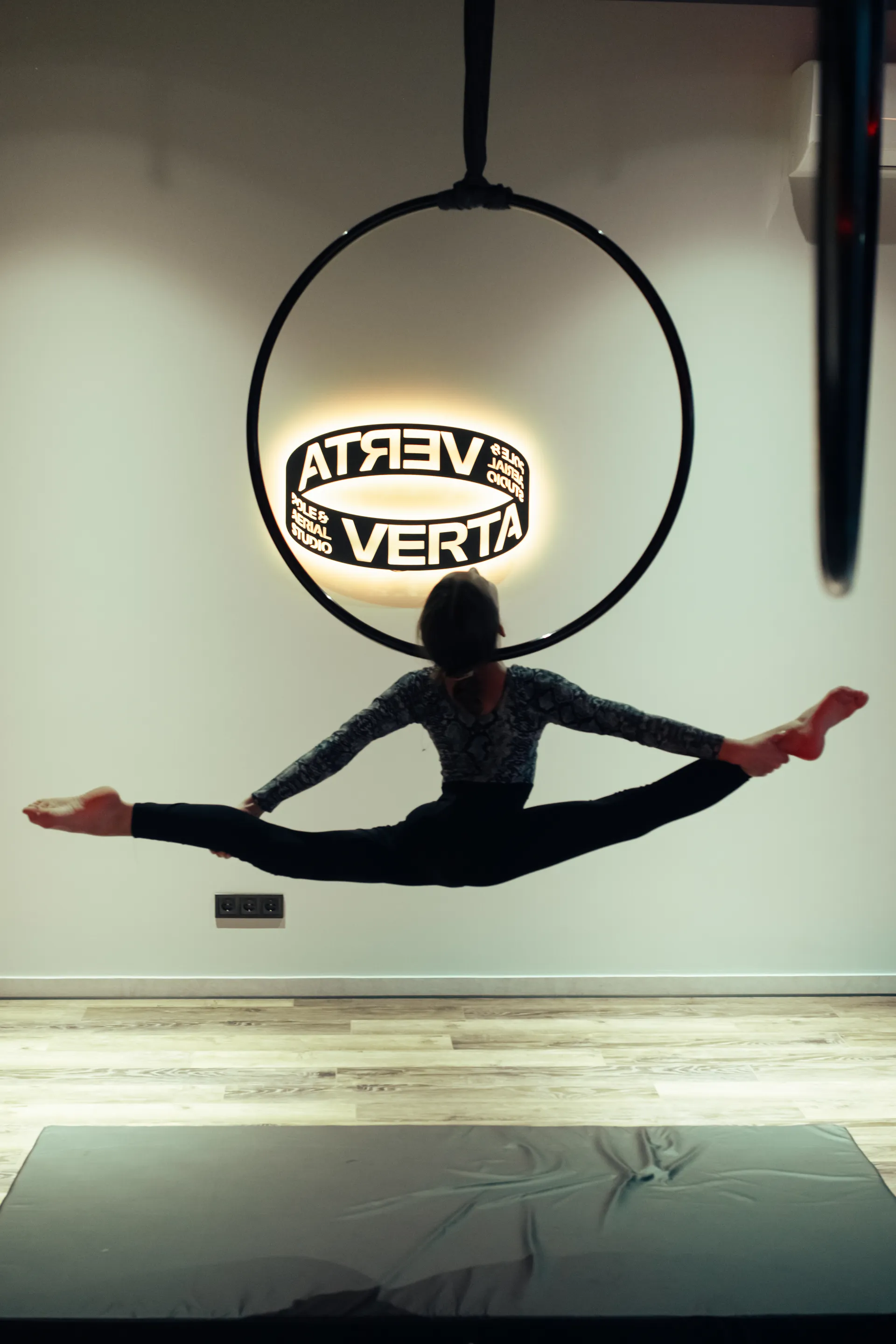 Заняття на повітряному кільці — це грація, сила та мистецтво руху. Елементи виконуються у повітрі, що тренує координацію, стабільність і гнучкість. Aerial Hoop створює особливе відчуття легкості, водночас укріплюючи все тіло й формуючи гарну поставу.